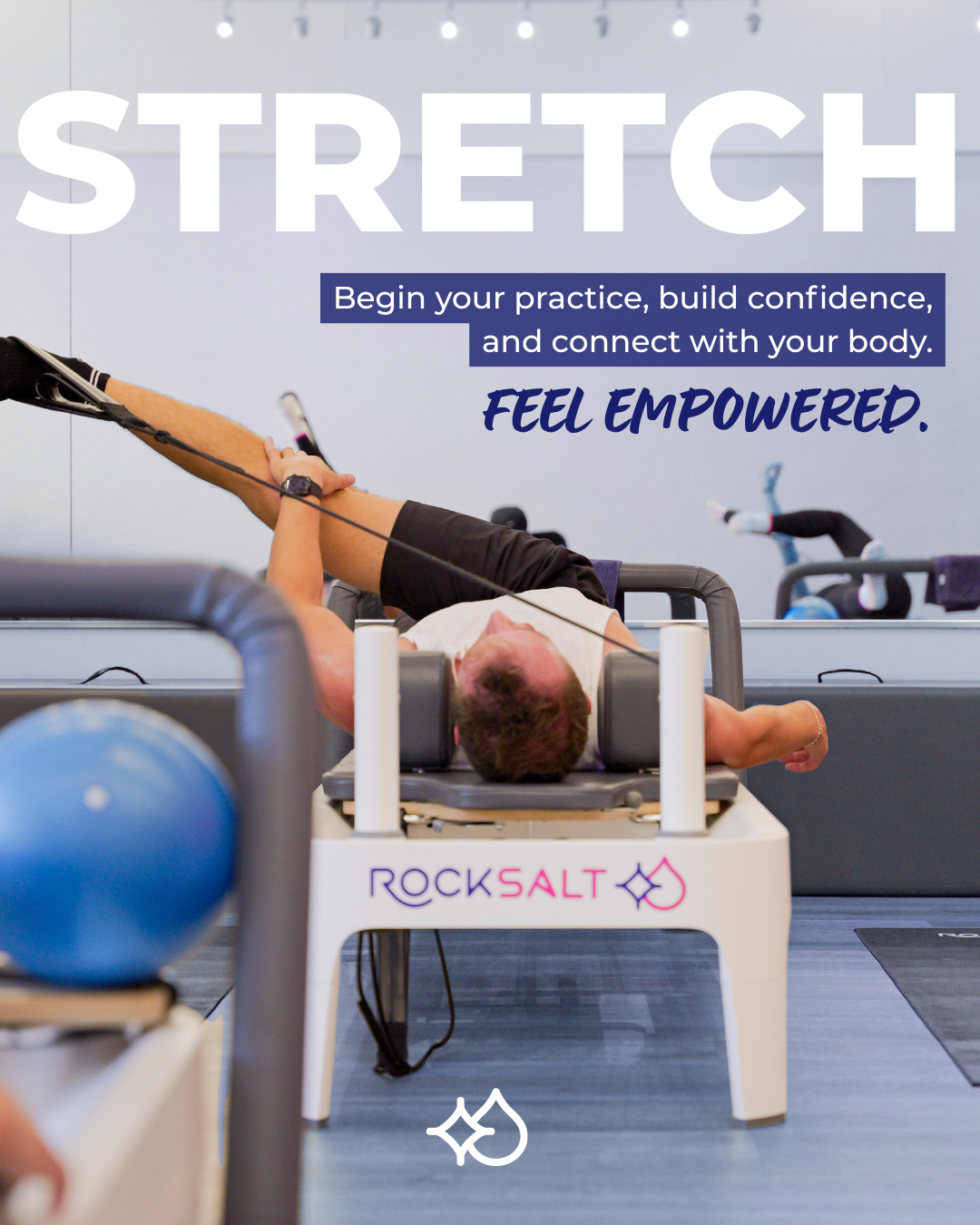 At RockSalt, every class is designed with purpose—so you don’t just move, you move with intention. Whether you’re stepping onto the reformer for the first time or looking to level up your routine, our three signature class experiences meet you where you are and push you forward.
